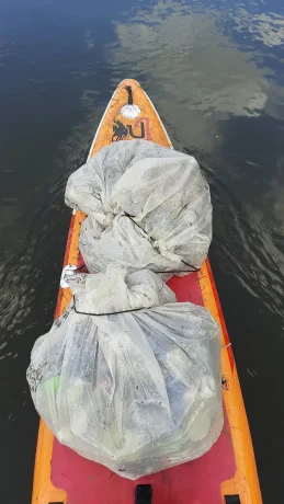Trasę około 10 kilometrów pokonaliśmy w tempie pięciokrotnie wolniejszym od klasycznego spływu, zbierając kilkadziesiąt kilogramów śmieci. Na naszych deskach popłynęły między innymi dwie opony, rama roweru, grille, śmietniki oraz pełne worki butelek i plastikowych opakowań. O trochę lepszy wodny świat postarało się sześcioro członków wielkiej, poznańskiej społeczności SUP.